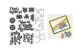 Bring bold sentiments and clean die-cut details together with the Totally Awesome Stamp & Cut set. This set pairs expressive, high-energy phrases with perfectly matching dies for easy layering and polished results. Stamp the sentiments and use the coordinating metal dies to cut each phrase cleanly, making it simple to add dimension, stack layers, or create standout focal points. The playful typography works beautifully on its own or as part of a layered card design. This Stamp & Cut set includes 11 clear stamps and 11 coordinating metal dies. Approximate Size: Stamp Set: 4 x 6